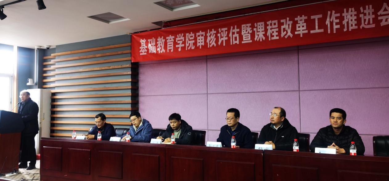 为迎接新一轮的本科教育教学审核评估,落实学校审核评估实施方案,同时以审核评估为抓手,进一步推进提升基础课程教育教学质量,12月6日下午,基础教育学院在教A楼报告厅召开本科教育教学审核评估暨基础课程质量改革工作推进会。党委常委、副院长刘益,教务处副处长(主持工作)李桐,学院领导班子、各部室主任、书记及全体教师参加会议。会议由学院党总支书记李选集主持。