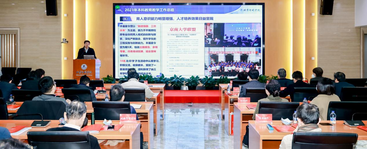 教务处负责人从高等教育发展新形势、本科教育教学工作举措及成效、“十四五”人才培养发展规划完成情况以及下一阶段工作等方面汇报了2023年本科教育教学工作总体情况和2024年工作计划。机电工程学院、设计艺术学院、印刷与包装工程学院、出版学院分别作为学院代表就专业建设、课程建设、实践教学创新、学风建设与学业辅导等方面进行汇报。