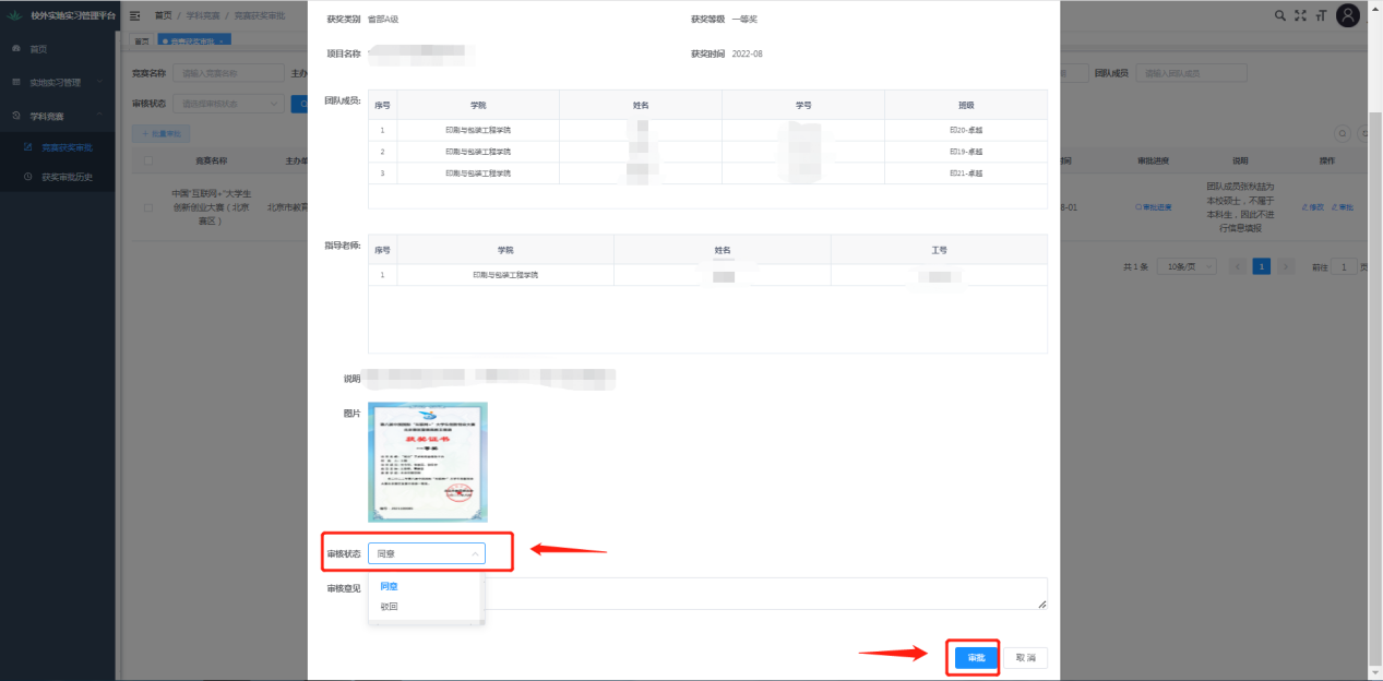 注:学院/学校驳回后,学生登录“学科竞赛管理平台”查看驳回原因,修改后可再次提交。