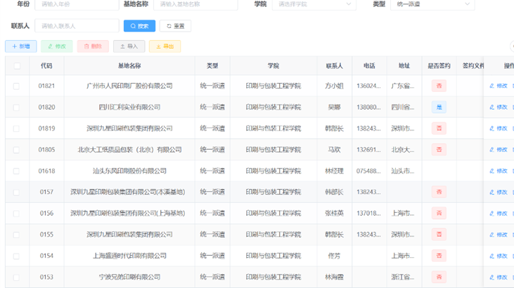 依托深厚的行业背景,与中粮包装、雅昌文化集团等50余家行业龙头企业共建实习基地,开发校外人才培养基地管理平台,实施“双导师制”负责学生的专业实习等任务。依托国家级人才培养基地与科研平台,支撑学生 “认知-实践-实训-创新”四级实践体系,让全体学生经历印刷、包装实现各环节,达成“一生一册”工程实践目标,让学生成为自主的学习者、前沿的探索者和工程项目的主动实践者,增强解决复杂工程问题能力。这也成为企业人才招募和学生就业的重要依托支撑途径。
