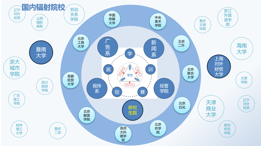 各高校从合作背景、模式认可、实践应用及未来规划等维度,系统证实北京印刷学院依托《展会实务》核心课程创新构建的学训赛创就五维联动的新文科创新创业教育模式的价值:该模式契合新文科建设“实践型、复合型、创新型”人才培养要求,打破传统教育中理论与实践脱节、能力培养与职业发展错位等瓶颈,在广告、会展、时尚传播等多领域具备可复制、可推广的示范意义。