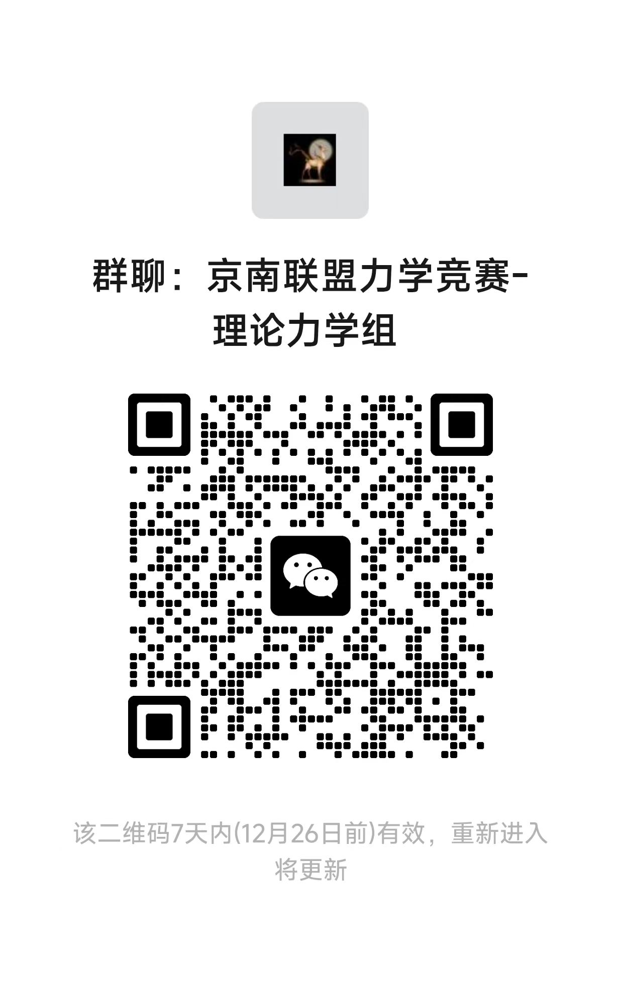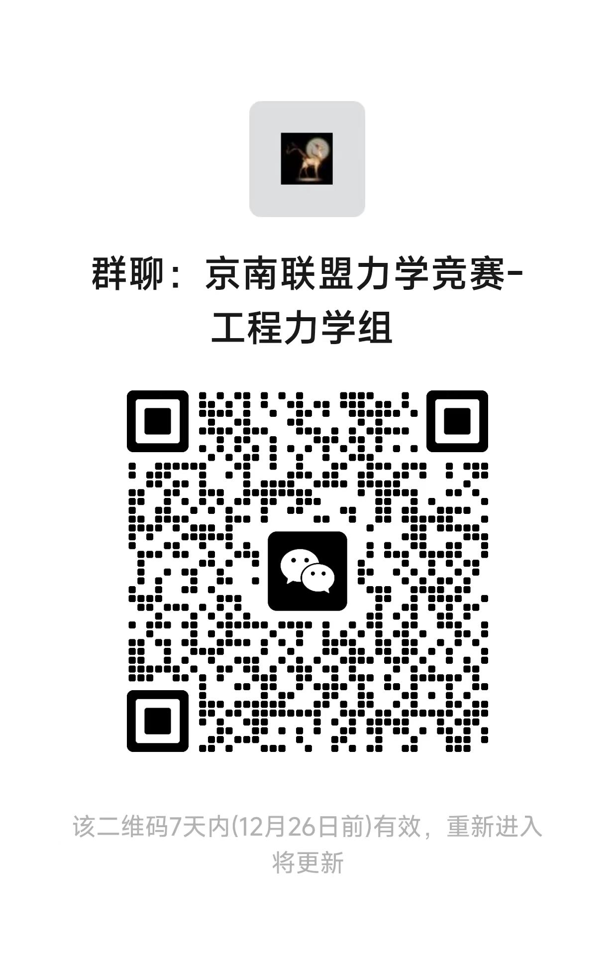 参加力学竞赛的同学,请扫描二维码加入竞赛微信群,后续竞赛相关通知将在微信群发布。